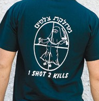 And so, as in the United States destruction of native peoples, Israel has become a genocidal state. I use that term without hyperbole and with much sadness. The recent press controversy of IDF graduation classes printing t-shirts with targets superimposed on pregnant Palestinian women which read “one shot two kills” or lined up on silhouettes of children with “jokes” about birth control are not simply tasteless or cruel. That no one complained before now in this citizen army points to a culture which, not for the first time, is seen wishing to exterminate an entire people who oppose them. How far Israelis have come from those Capra photos of stalwart young camp survivors building a new nation with arms still tattooed with serial numbers. Mythology or not, one image of itself as a defender of right — conveniently ignoring their Arab neighbors — has been replaced with a self image for the Jewish state that sees the murder of children in the womb as a solution to their definitional problems.